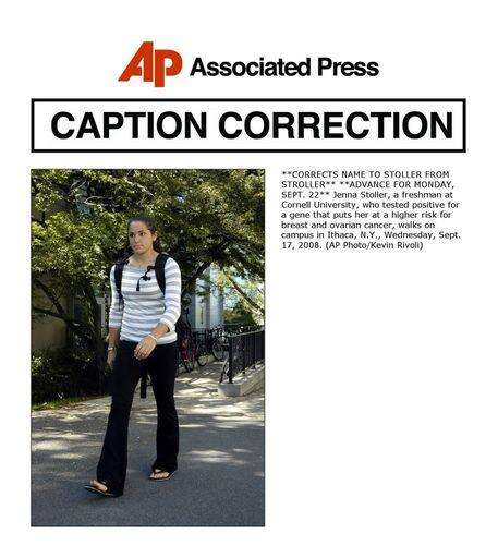 Jenna Stoller, a freshman at Cornell University, tested positive for a gene that puts her at a higher risk for breast and ovarian cancer. Associated Press
