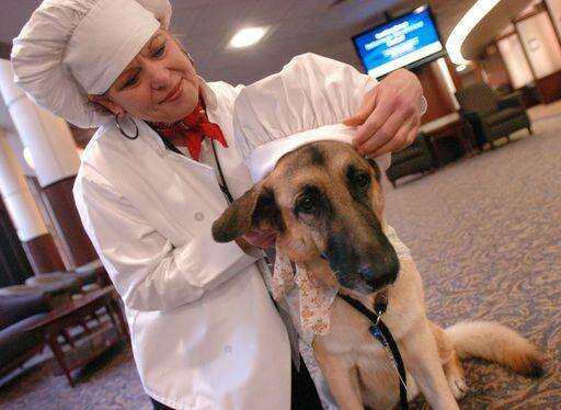 Cheryl Aloff of Geneva, a professional chef, was there in her chef's toque and apron, along with her dog, Lizzi, a 6-year-old German shepherd, who was similarly attired.