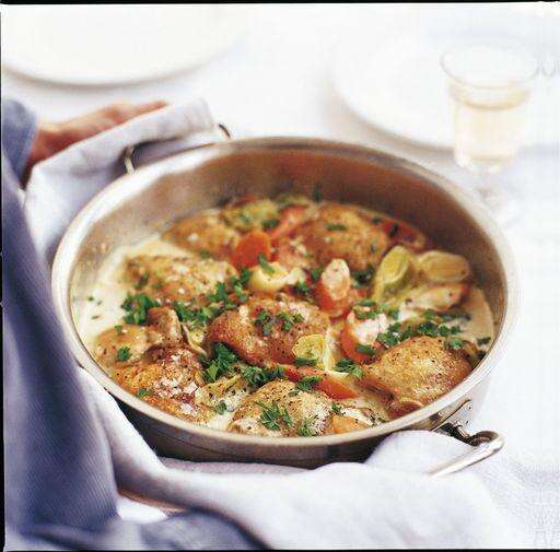 Chicken Saute with Carrots, Leeks, Mustard and Cream