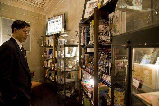 The small gallery features bookshelves organized by publishers and divided into subjects like religion, philosophy and Chicago history, separated by dog- and jack-shaped bookends with comfortable couches and chairs where visitors can sit down and read for a bit. The goal is to celebrate the often overlooked Chicago publishing industry by bringing together more than 1,500 books from more than 100 local publishers.