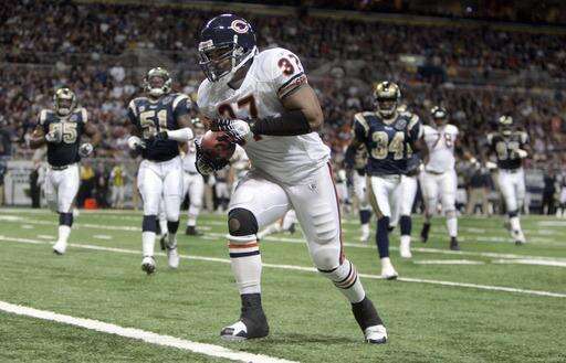 And the Rams struggled to get to the line of scrimmage all day on the ground, picking up just 14 yards on 19 attempts. All four starting defensive linemen - Ogunleye, Harris, Brown and Dusty Dvoracek - had 2 tackles for loss, as did Urlacher. Lance Briggs picked off 2 passes for the first time in his career.