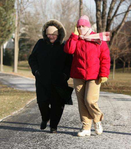 Thisiji Kuha, left, and Lubova Moseja of Vernon Hills brave the wind and the cold to take a walk in Century Park as Lake County residents woke to single digit temperatures as frigid cold embraced the area. Gilber R. Boucher II | Staff Photographer