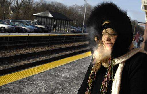 With a temperature of around 5 degrees, Lori Schatzer of St. Charles waits for a Metra train in Geneva to take her to her job in downtown Chicago Monday morning. She was, needless to say, ridiculously cold. Rick West | Staff Photographer