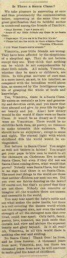 • "Yes, Virginia, there is a Santa Claus," unsigned editorial in The Sun of New York, 1897.