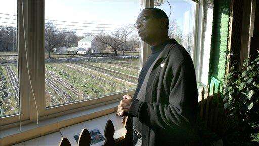 DeWayne Wells, president of Gleaners Community Food Bank of Southeastern Michigan looks out on the bank's garden in Detroit, Thursday, Dec. 11. Associated Press