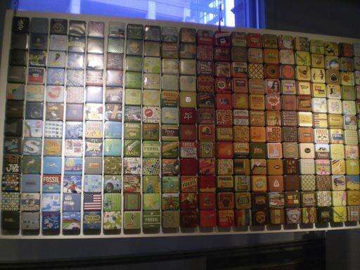 The main exhibit on the first floor is dedicated to the Fossil brand. Portraying a "modern vintage" image, Fossil is best known for its watches. But even more recognizable than the watches themselves are the reusable decorative tins they are sold in, dozens of which are on display in the museum. The exhibit, open until March 1, also includes other products from the brand's line and an inside look at its history and DNA.