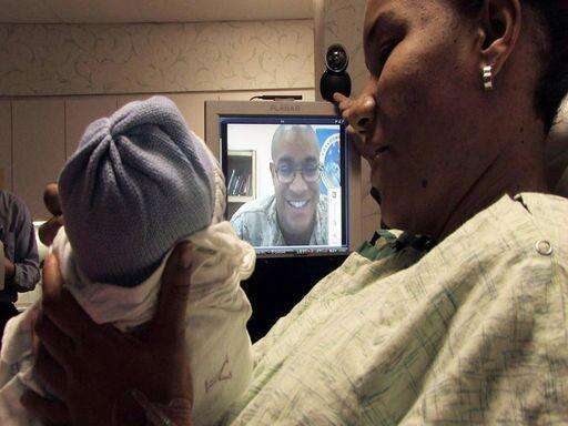 Marine Sgt. William Chevalier was serving in Iraq and had to watch via satellite link as his wife, Janelle, gave birth in December to Christian James Chevalier at Naperville's Edward Hospital. In late March, William finally got to come home to see his baby boy in person.