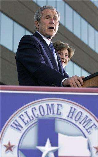 "The presidency was a joyous experience, but as great as it was, nothing compares with Texas at sunset," Bush said to cheers from the crowd of about 25,000 as former first lady Laura Bush stood at his side. "Tonight I have the privilege of saying six words that I have been waiting to say for a while -- it is good to be home."