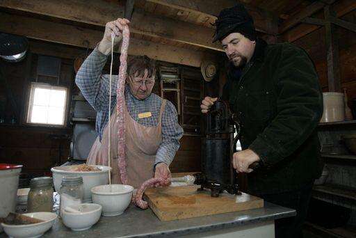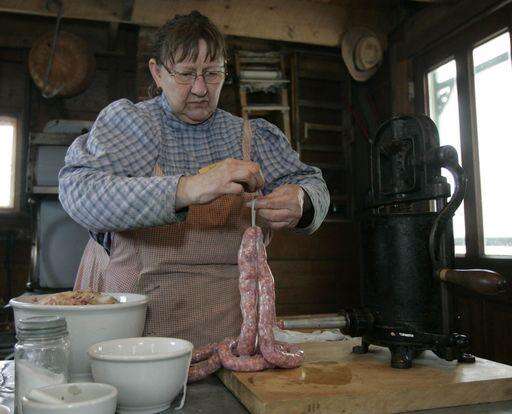 While the farm depicts life in the 1890s, Walton admits she doesn't butcher a hog or clean out the intestines for casings as the farmers would have done back then. But she does mix her purchased ground pork with herbs and spices and stuff the casings much as the pioneer women would have.