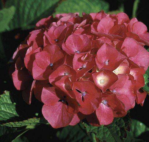 •A serious hydrangea with bold, pink color is Masja, one of the beloved macrophyllas. The compact shrub grows in partial shade. Heronswood.