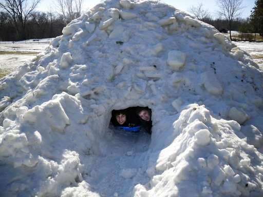 Boy Scouts Sam Verga, left, 16 and Ben Venturi, 17, fashioned snow into an igloo at Lake Villa Township's Winterfest on Saturday. Gwen Jader