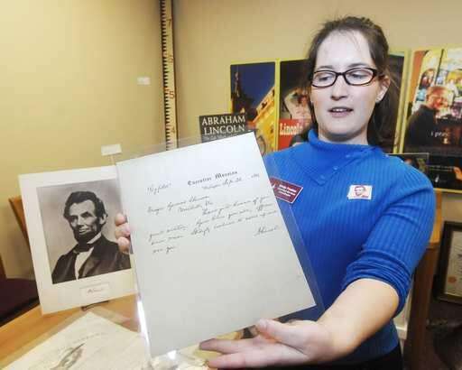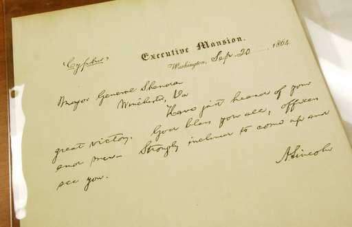 As part of the observance, the college also opened its rarely seen archive of Lincoln materials to display, among other items, a handwritten 1859 letter and a presidential telegram to Union Army Gen. Philip Sheridan, congratulating him on a successful battle.
