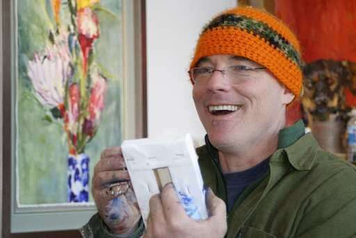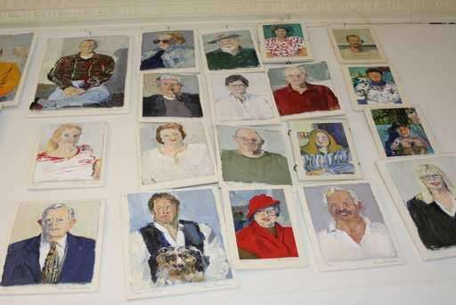 The walls of his gallery are filled with small, colorful portraits, most about the size of a post card, that he has created since about 1993 in his attempt to paint every Saugatuck resident who is willing to sit for him. He estimates that he has completed between 200 and 300 of them so far.