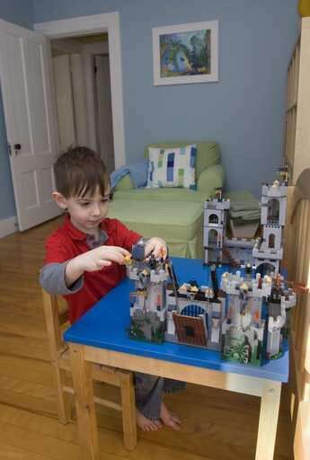 Decorations we kept simple. We used some of his favorite items (stuffed animals, books, ceramic banks, etc.) to adorn free shelf space. For the walls, we went with three framed prints with a cartoonish knights and dragon theme. This is the only decorative nod to one of his current fascinations, making it easy to swap out when the next one hits.