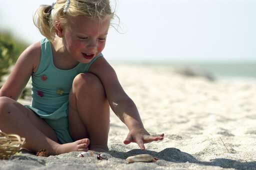 A young girl looks at shells on Sanibel Island, just offshore in the Gulf of Mexico in Florida. Associated Press
