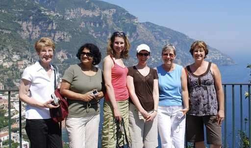 Women's Travel Club members pose on the balcony of their hotel, The Lloydís Baia, in Vietri sul Mare, Italy, last summer as they are about to depart for a tour of the Italian coastline including Amalfi, Positano and Sorrento. Associated Press