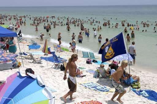 Spectators crowd the beach before the Blue Angels perform at Pensacola Beach in Pensacola, Fla., last summer. Associated Press