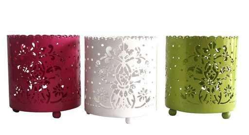 Spring's the perfect time to change out a few accessories and introduce some new hues; without spending a great deal, a room can look refreshed and invigorated in no time. Target has inexpensive yet appealing floral throw pillows and wall art, as well as a pretty filigreed votive holder in grass green, white or deep pink. Perfect for the patio, when the nights begin to warm.