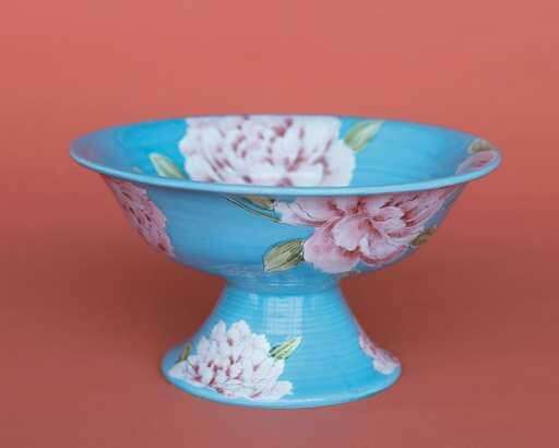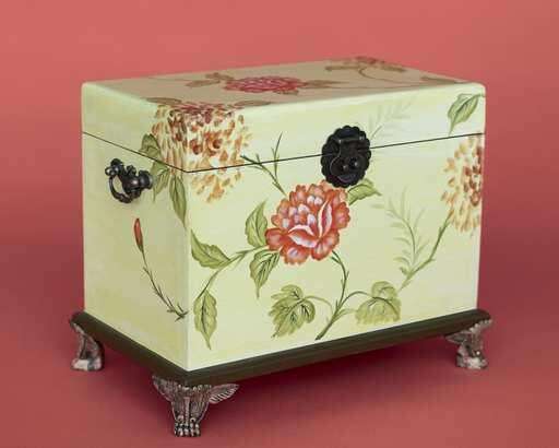 Over at Homegoods, there are sweet little footed bowls in robin's egg blue, as well as a creamy lacquered chest hand painted with chrysanthemums.