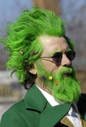 A leprechaun, Irish dancers and bagpipers joined a procession of about 40 different entrants, including a dog dyed green for the occasion, the Navy Band Great Lakes, the Midlothian Pipe Band and the Boys and Girls Club of Dundee Township.