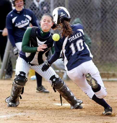 Up next was Rachel Anello, who lifted a flyball to center field that Lake Park's Vicki Tomaka lost in the swirling winds. One run scored on the play, and courtesy runner Chelsea Klein came home with the tying run on a wild pitch.