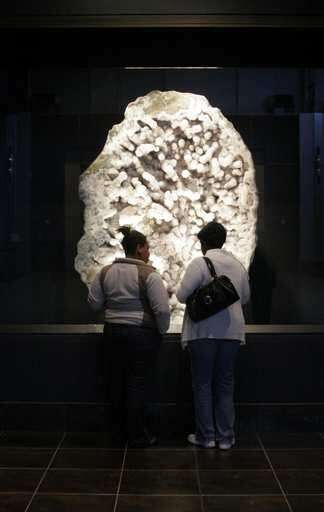 Visitors look at a giant amethyst geode at the science museum. Associated Press