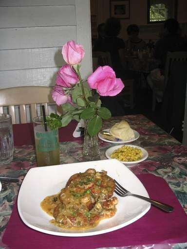 A plate of crawfish étouffée, a Creole dish, is served over fried eggplant, in the Oak Alley Plantation Restaurant in Vacherie, La. Associated Press