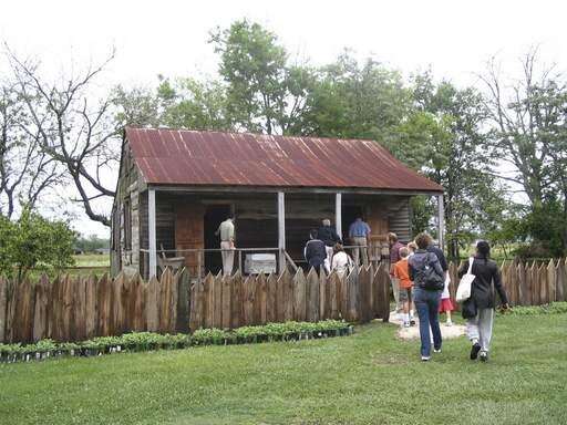 A tour group enters a cabin at the Laura Plantation in Vacherie, La., where Creole African slaves lived before the Civil War and their descendants lived until 1977. Associated Press
