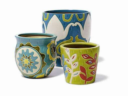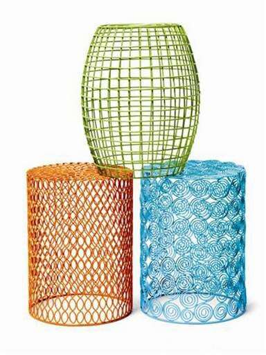 www.homegoods.com: geometric wire stools, $29.99; hanging lanterns, $16.99; handpainted Vietnamese garden pots, $7.99-$14.99