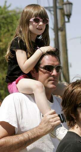 Angelo Cesarini and his daughter Ally, 4, of Melrose Park, watch Lombard's annual Lilac Parade along Main street Sunday.