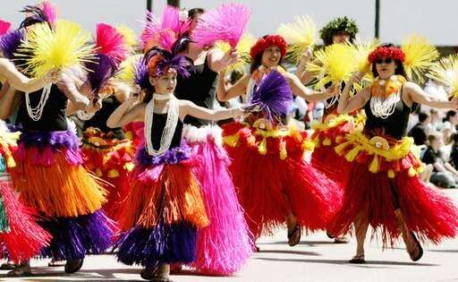 The Barefoot Hawaiian participates in Lombard's annual Lilac Parade along Main street Sunday.