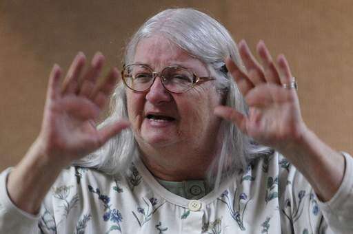 Oswego resident Carol Anaski prays during the annual Peace Officers Memorial Observance service at the Public Safety Officers Plaza outside the Naperville Police station Tuesday in Naperville.