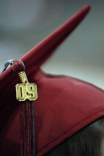 A Mundelein High School graduate wears her 09 tassel during the 2009 graduation ceremony of Mundelein High School on Sunday.