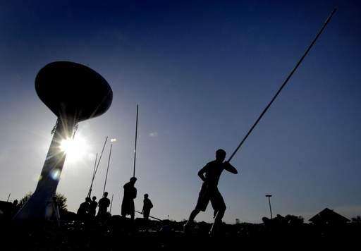 Varsity pole vaulters take their practice runs Thursday at the Upstate Eight Conference boys track meet in Streamwood.