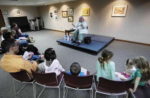 Master storyteller Elizabeth Ellis performs for young children Sunday at the St. Charles Public Library. Ellis grew up in the Appalachian Mountains and now lives in Texas.