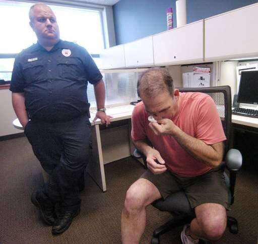 Unsuccessfully fighting back tears, he shook hands with and hugged paramedics Mike Lynn, Dan Prezell and Mike Raasch and talked about the experience they shared - one that included Lynn performing CPR and twice shocking Stensrud's heart with a defibrillator to make it beating properly.