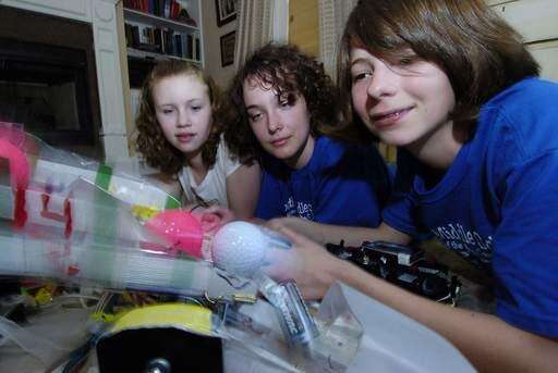 The mechanical creation of eighth-graders Madeline Hume and Jacki Rohde from South Middle School took first place in a timed obstacle course event at the National Science Olympiad competition last weekend in Augusta, Ga. The two students spent Friday nights and Sunday afternoons over the course of seven months practicing in Hume's basement for competitions at the regional, state and national levels.