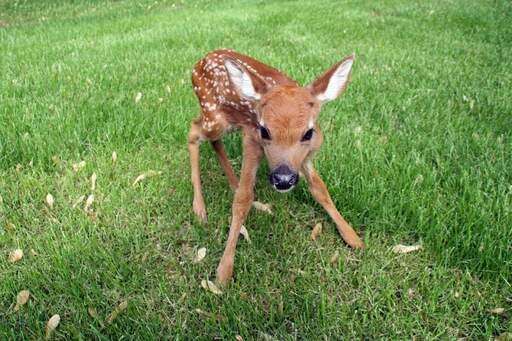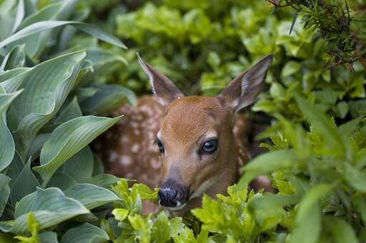 The fawn was sitting in the garden waiting for her mother to return. The mother left her baby in an area that she feels is safe.