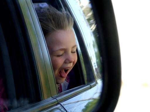 I took this photo of my daughter through the rear view mirror while she was hanging her tongue out of the window in the wind