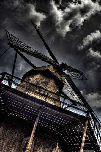 Clouds pass over the Fabyan Windmill in Geneva, IL at the Fabyan Forest Preserve.