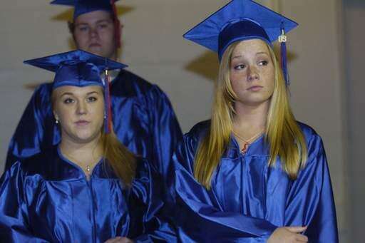 William Jones hurries to get in line before Dundee-Crown High School held its graduation ceremony for the Class of 2009 at the Sears Centre on Saturday, June 6, 2009.