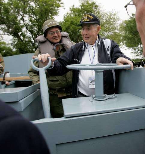 D-Day veteran Dr. Marvin Mullen of Villa Park, right, on the LCVP (Landing Craft, Vehicle and Personnel) which he drove in the WWII and was unveiled as part of the 65th anniversary of D-Day at Cantigny Park in Wheaton.