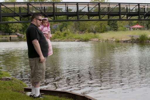 Antioch resident Kevin Olson and his nine-month old daughter Isabella step aside from the opening ceremony at Lakefront Park II in Round Lake Beach on Saturday, May 6, 2009.