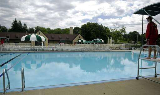 Lifeguard Dan Hillis, 17, of St. Charles watches over an empty pool as the noontime temperature stays below 60 degrees at Pottawatomie Park in St. Charles Tuesday.