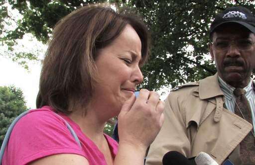 Arlington Heights resident Cindy Erickson breaks down as she talks about the loss of her friend and one the woman's children after a suspicious fire in Arlington Heights.