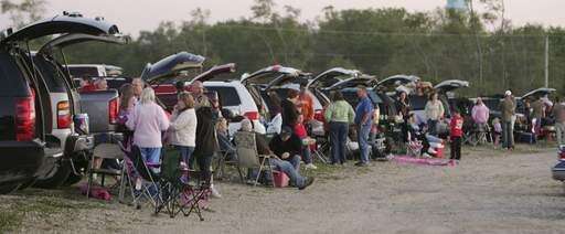 Carloads of people prepare to watch a movie at the McHenry Outdoor Theatre. Minivans and SUVs are asked to park farther back from the screen because of their larger size.