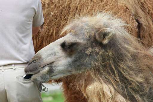 While the zoo keeper was grooming a camel at the Brookfield Zoo, the other was busy picking his pocket!