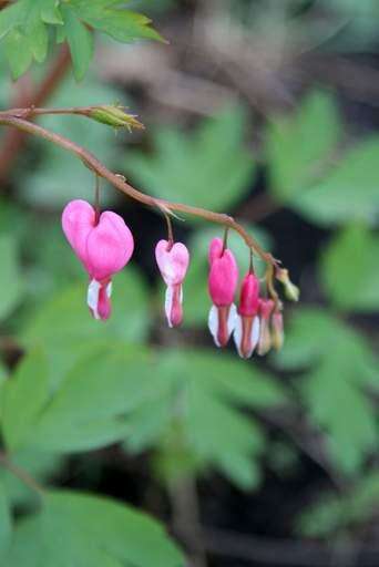 These flowers, called Bleeding Hearts, thrive in our family garden that my mother helps me nourish every year.