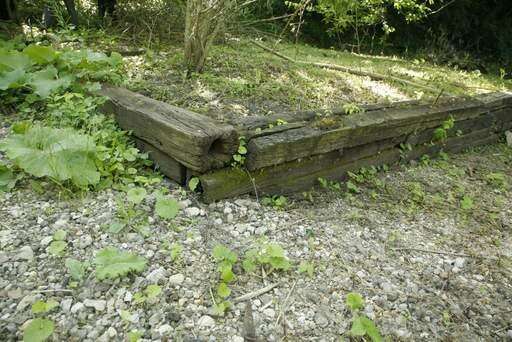 But it's not just a train she's worried about. Following the railroad gravel down the sinkhole, toward her home, is a mysterious pile of twisted steel bands, crunched old cars and discarded air conditioners that somehow ended up on the easement for the railroad tracks. Teter has contacted the owner of the industrial property next to her, but the owner expressed no knowledge of how the menacing pile of debris got there. And so it remains in place, except for the forces of erosion and gravity pulling down onto Teter's property.