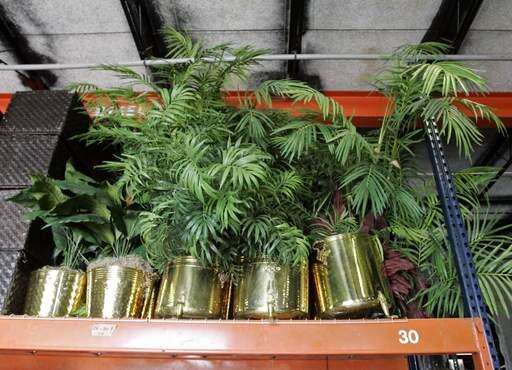 Silk plants, once belonging to the Stanford Financial Group, are stocked in the warehouse at AMC Liquidators in Fort Lauderdale, Fla.